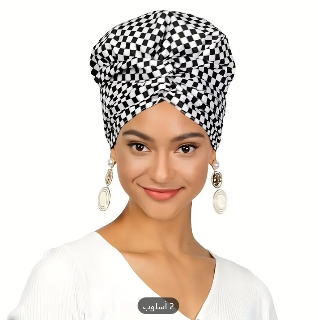 ANEWOW African Print Head Wrap with Satin-Lined Plaid Series - Vibrant Red, Orange, Black & Beige Pattern, Adjustable Fit for Women, Holiday & Casual Wear, Hand Wash or Dry Clean, Festive Headwear, Satinlike Texture