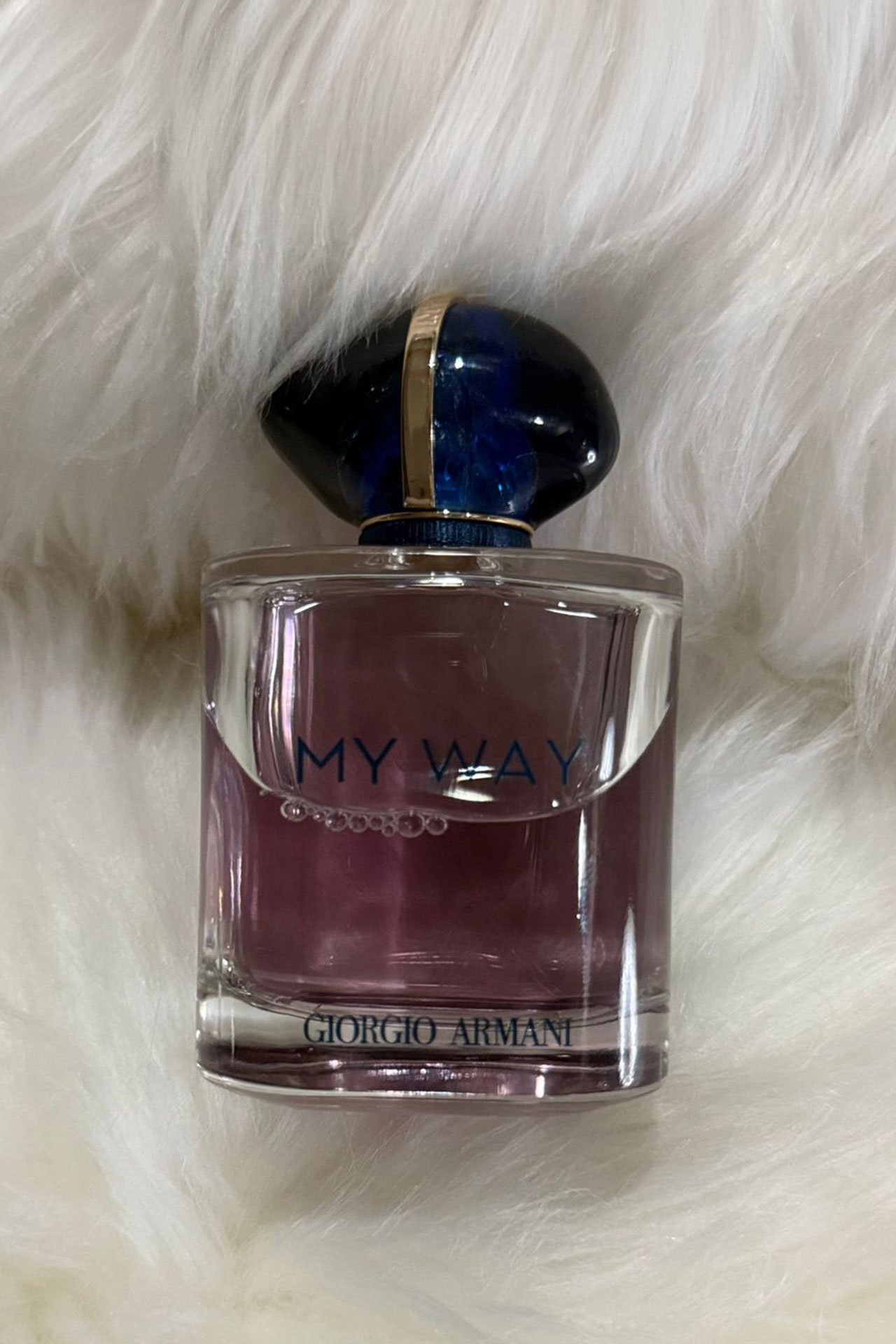 A deeper and more intense version of the original "My Way" fragrance, featuring a bottle with dark purple liquid and a royal blue cap. The scent is centered around a powerful floral bouquet of Tuberose from India, enhanced by the warmth of Sandalwood and Vanilla from Madagascar, creating a rich and long-lasting trail.