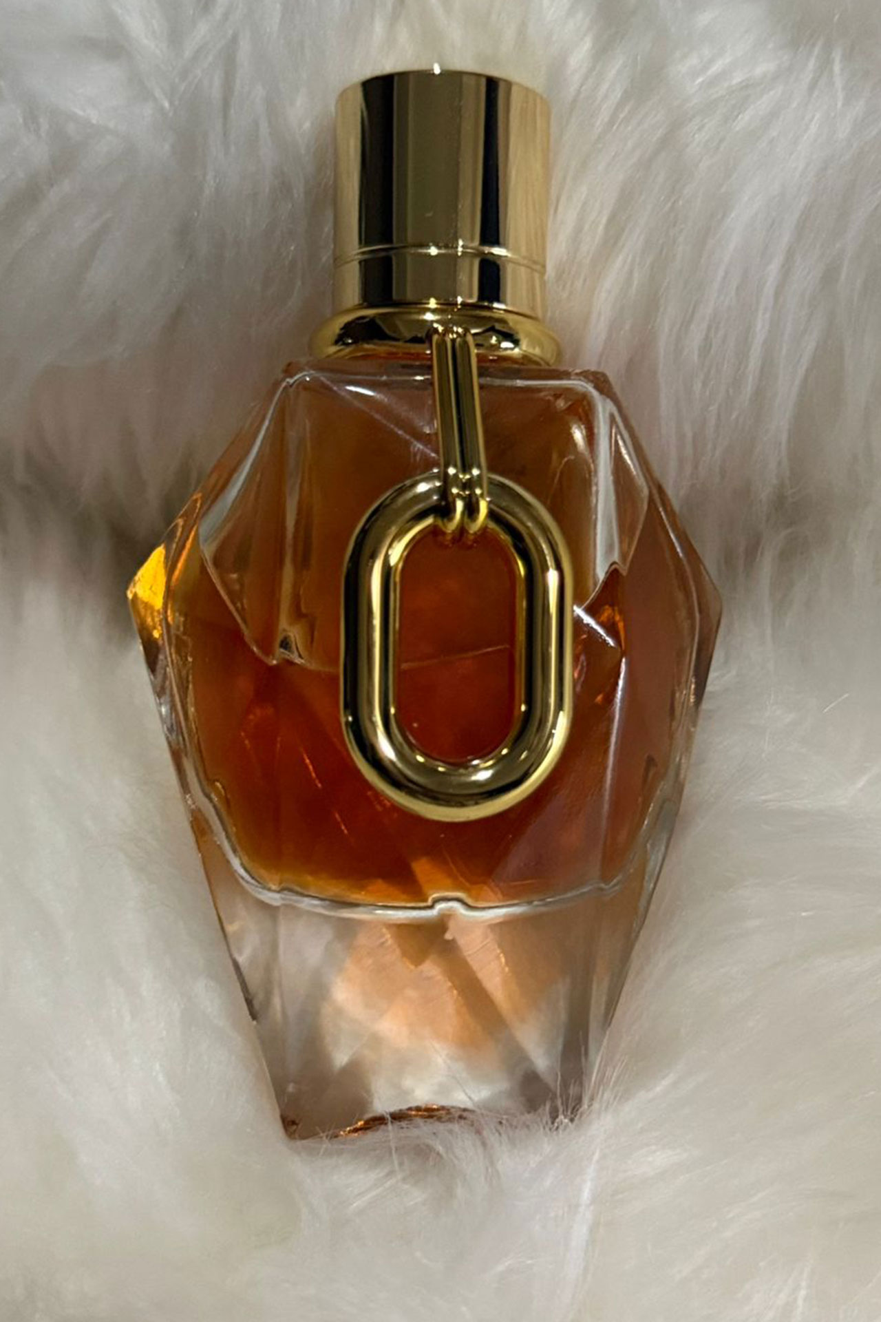 A feminine fragrance that embodies strength and reinvented femininity, featuring an iconic triangular bottle that reimagines the historic Prada logo, adorned with an elegant gold ring. The "Intense" version offers a powerful ambery-floral scent, blending the warmth of musk, the vibrance of orange blossom, and the depth of jasmine for a rich, long-lasting olfactory experience.