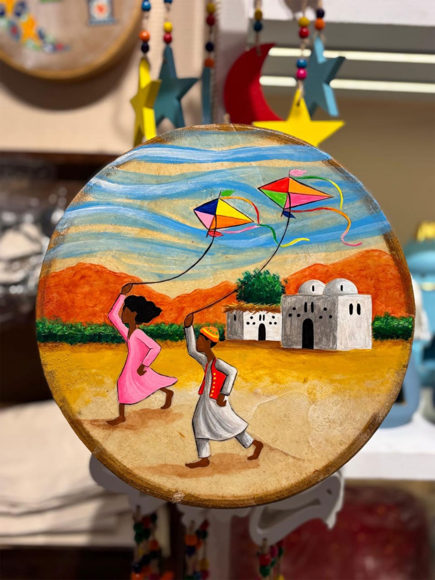A decorative wooden piece inspired by Egyptian folk art. This colorful pestle features bold Nubian geometric patterns and primary colors, reflecting the joy of Upper Egyptian or oasis heritage. Perfect for adding an authentic and cheerful touch to your home decor.